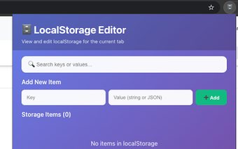 The extension features a real-time search function, enabling users to quickly filter through key-value pairs. Users can easily modify existing entries or create new ones directly from the popup interface. With privacy as a priority, LocalStorage Editor ensures that no data is collected or sent to external servers, making it a secure choice for managing localStorage data.